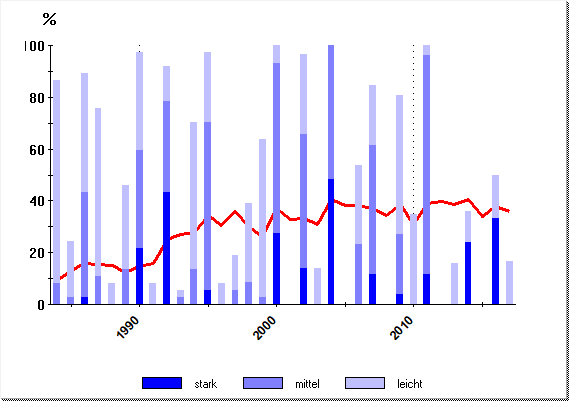 aller im Sommer des jeweiligen Jahres eingewerteten Buchen. Dargestellt